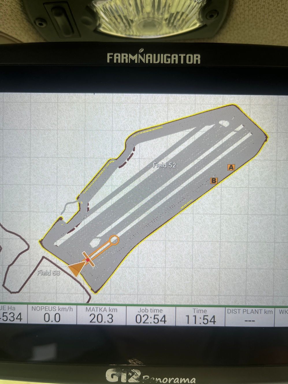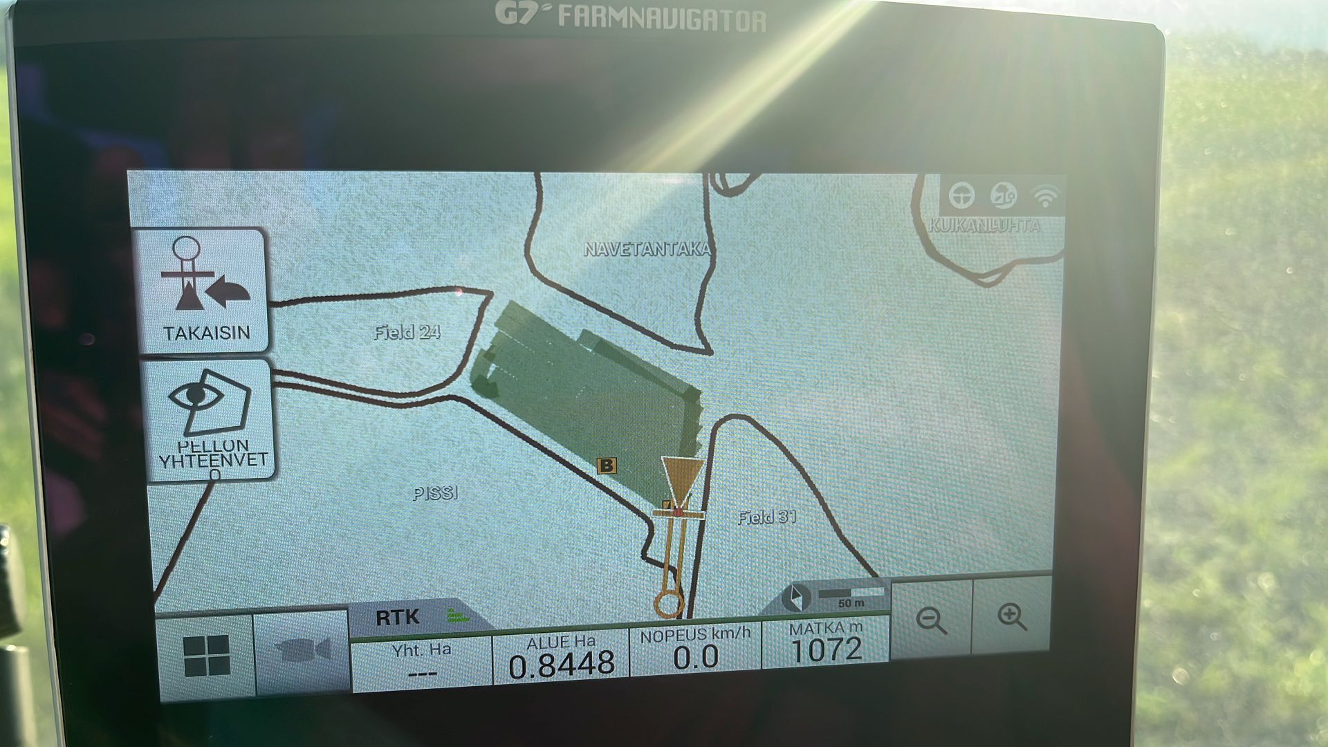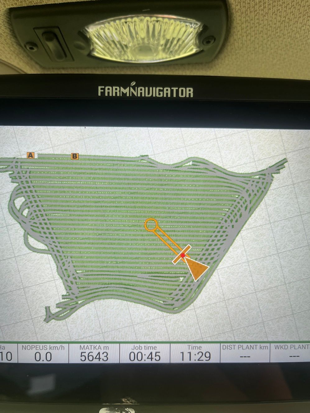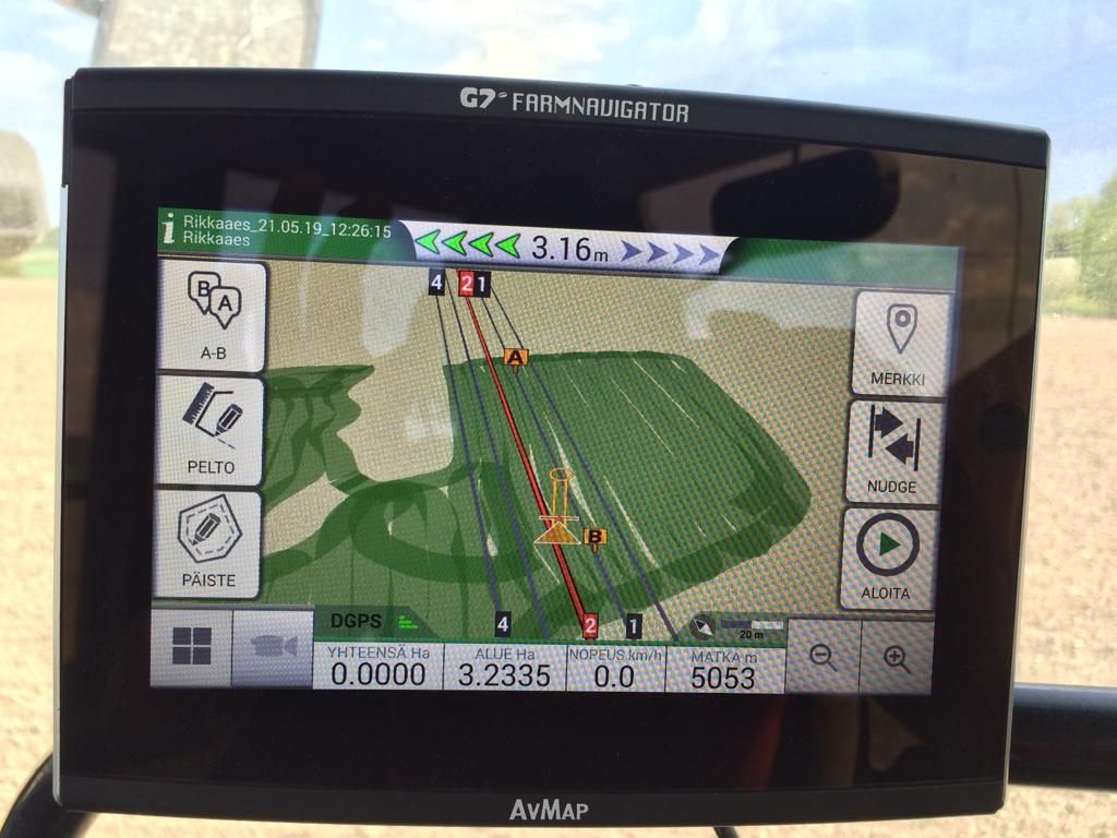 Helposti asetettavat ohjauslinjat ja selkeä opastuskursori näyttävät miten suuntaa on korjattava. Tehdyt työt, pellot ja ohjauslinjat tallentuvat automaattisesti Farmnavigatorin muistiin, ilman erillistä tallennuskomentoa. Palatessasi uudelleen aiemmin luomallesi pellolle, Farmnavigator tunnistaa sen ja hakee automaattisesti edelliset tiedot ja pellon nimen.
